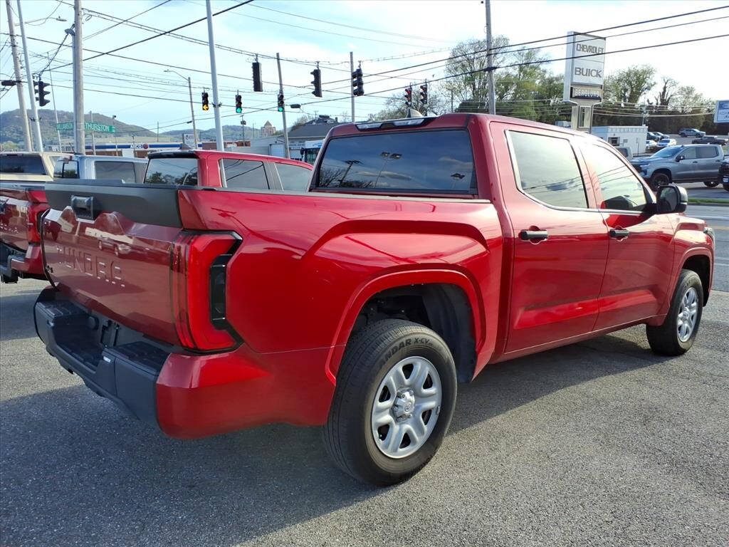 Ready to conquer the road and worksite, this 2024 Toyota Tundra SR is a powerhouse with low mileage â" only 22,341 miles â" and an aggressive price that makes it the best value in Roanoke, VA. Powered by a V6 3.5L (3445 cc) gasoline engine and equipped with 4WD, this Toyota Tundra delivers reliable towing capability, confident off-road traction, and efficient highway cruising. The rugged exterior and durable bed pair perfectly with a comfortable, tech-forward cabin. Stay connected with Apple CarPlay and Android Auto for seamless smartphone integration, while Cross-Traffic Alert adds a layer of safety during parking and backing maneuvers. This Toyota Tundra also carries a CARFAX 1-Owner designation and a CARFAX Clean Report, providing added peace of mind about its history and care. This SR trim balances practicality and capability: a straightforward, driver-focused layout, strong service record, and low miles that mean many years of dependable performance ahead. Whether you need a daily driver, a weekend adventurer, or a reliable work truck, this Toyota Tundra is set up to handle it all. Located in Roanoke, VA, this 2024 Toyota Tundra SR combines proven Toyota durability, modern connectivity, and safety features at the best price you'll find locally. Contact us to schedule a test drive and experience this versatile truck for yourself. Act fast â" a low-mileage Toyota Tundra with this history won't last long.